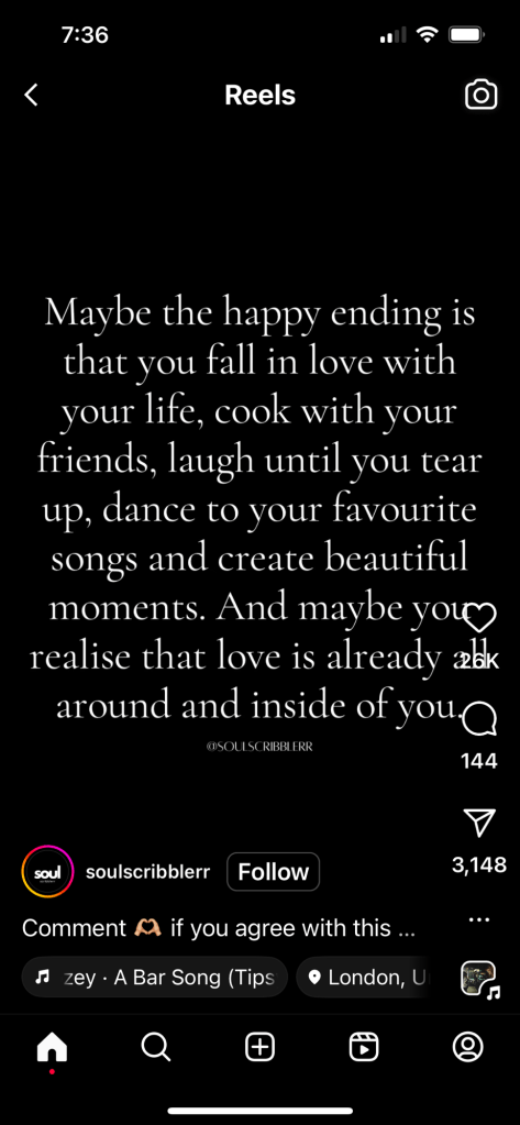 Viewing favorite chic flick shows and realizing the protagonist was really the antagonist- Sex and the City, Gilmore Girls — Carrie was really selfish and Lorilai was so immature. Sorry, I said it, it’s just fact.