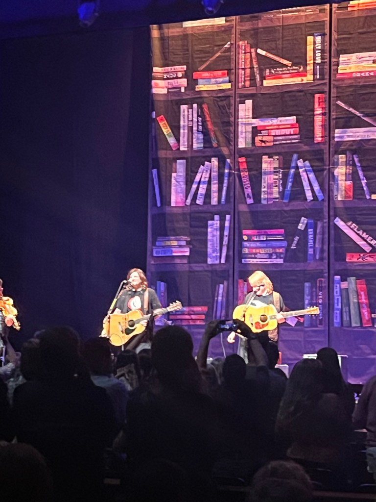 Watching the Indigo Girls – with just their guitars and an amazing violinist – sing and tell stories brought me right back to freshman year Anderson Hall laying on pillows on the dorm floor with my roommate Ellen and listening to the album and singing along while “studying”.